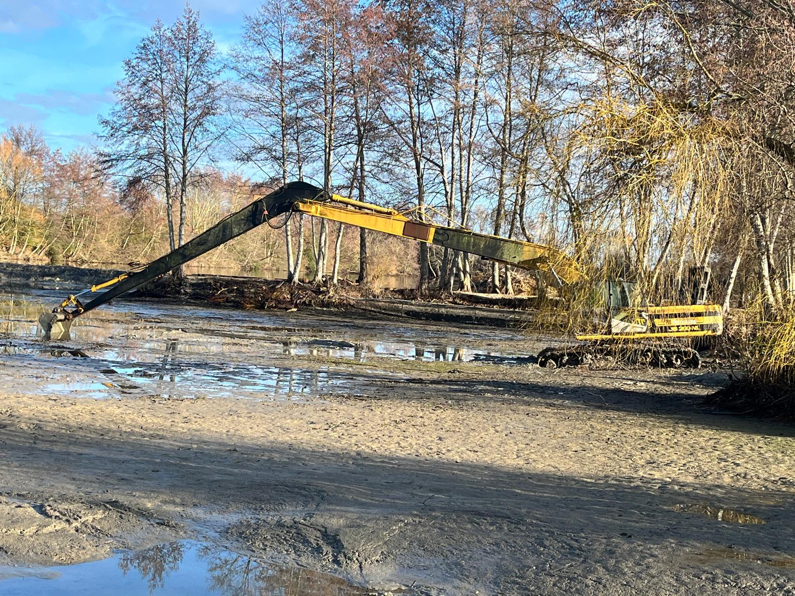 Re-forming lake and pond banks, as most know France has coypu/ragondin problems tunnelling through lake banks causing the banks to collapse and water to escape. If your water levels drop this could well be the cause.